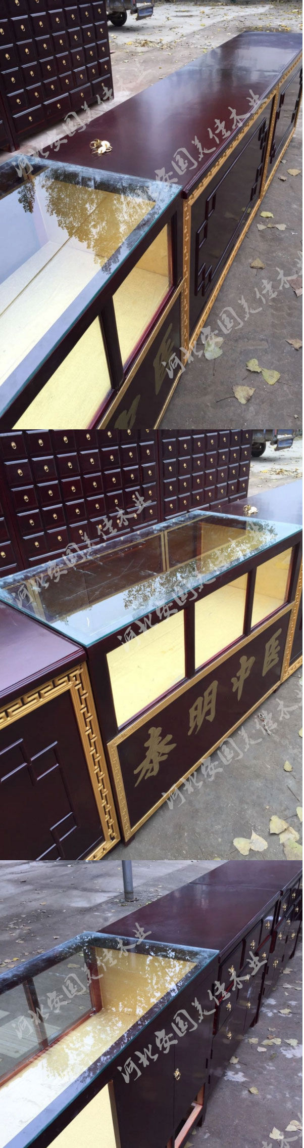 中藥柜展示臺尺寸---高0.9公分,寬150公分,厚60公分。