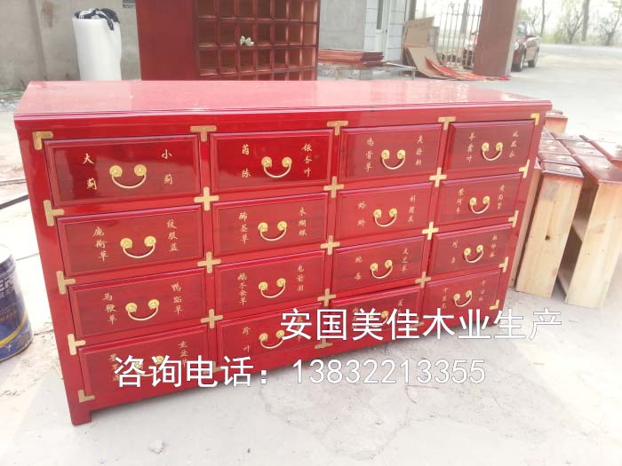 中藥柜顏色---經(jīng)典亮光酒紅色烤漆。