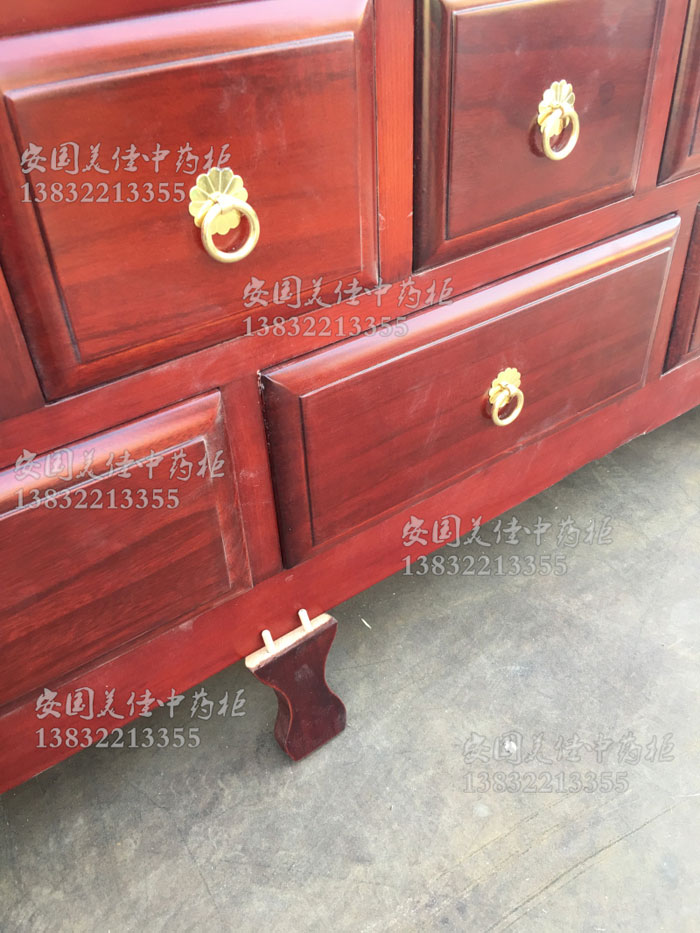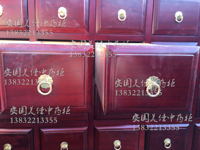 中藥柜用料---框架和抽屜選用優(yōu)質(zhì)樟松木,抽屜下面有五合板封底,防串味,抽屜底選用七合板,中藥柜的后背兩側(cè)頂部選用七合板。