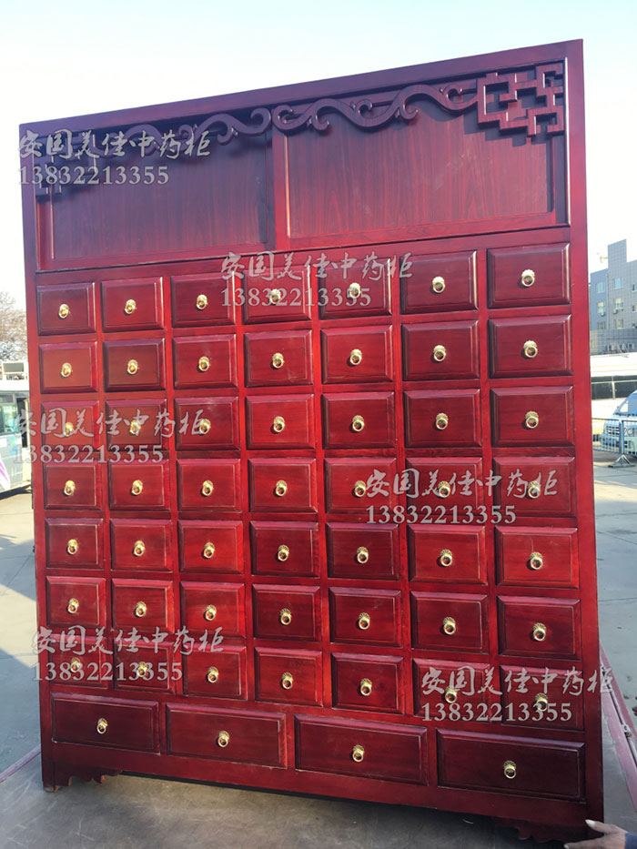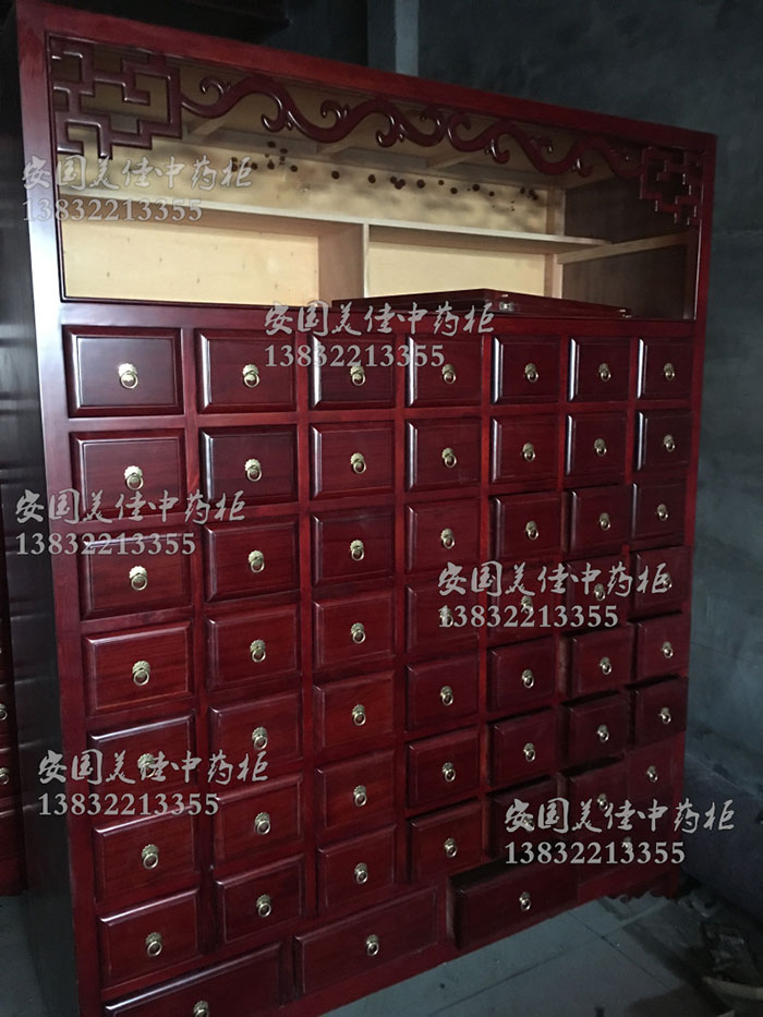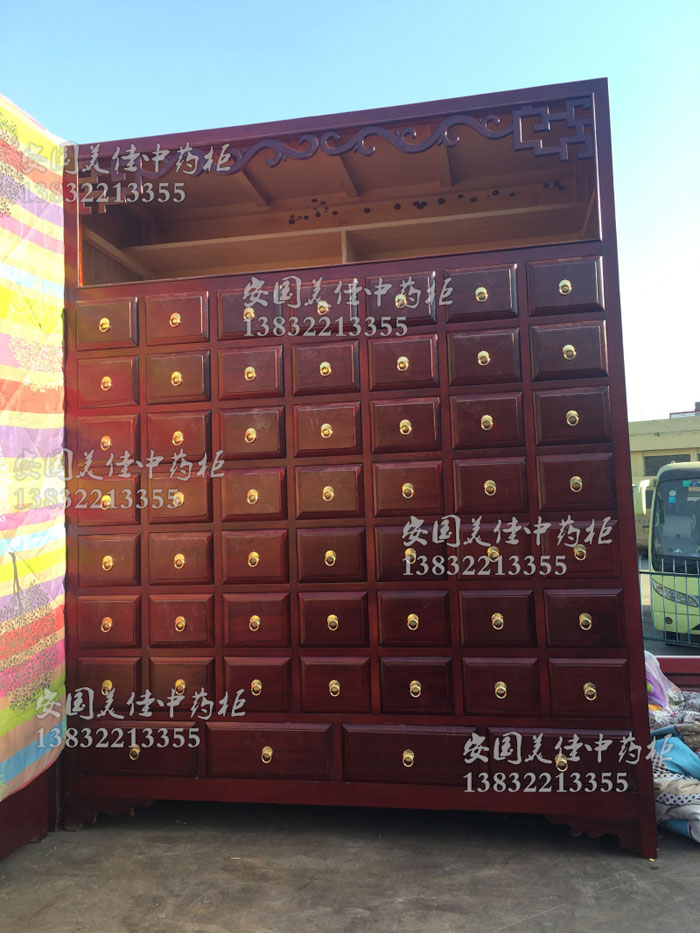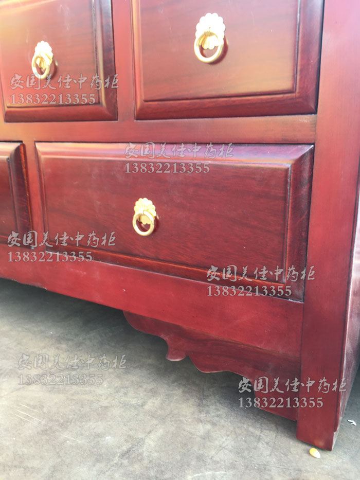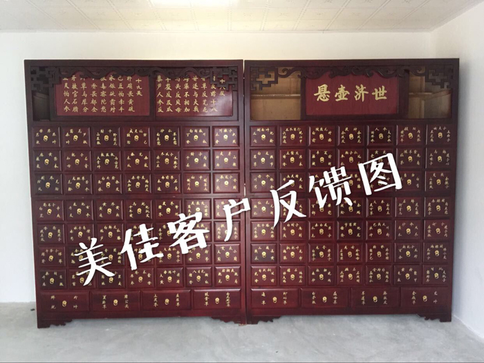 中藥柜款式---橫七豎八款。橫著七個(gè)抽屜,豎著八層抽屜,較下面的四個(gè)大抽屜,每個(gè)抽屜兩味藥,每個(gè)中藥柜可以裝155味藥。