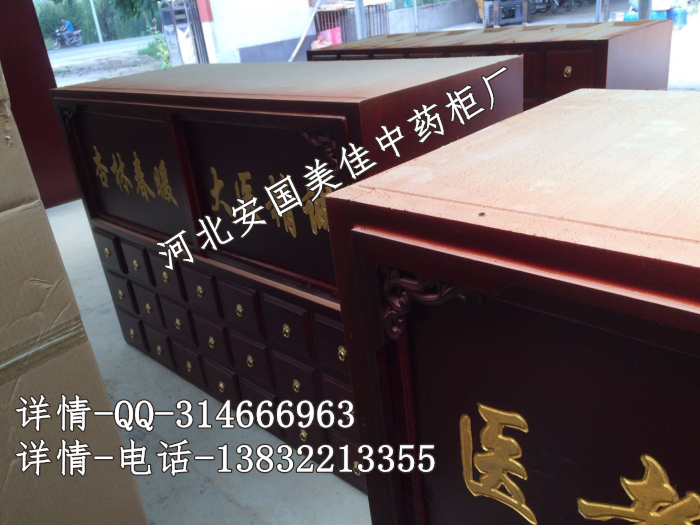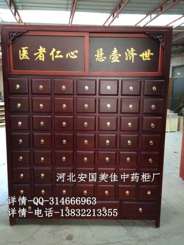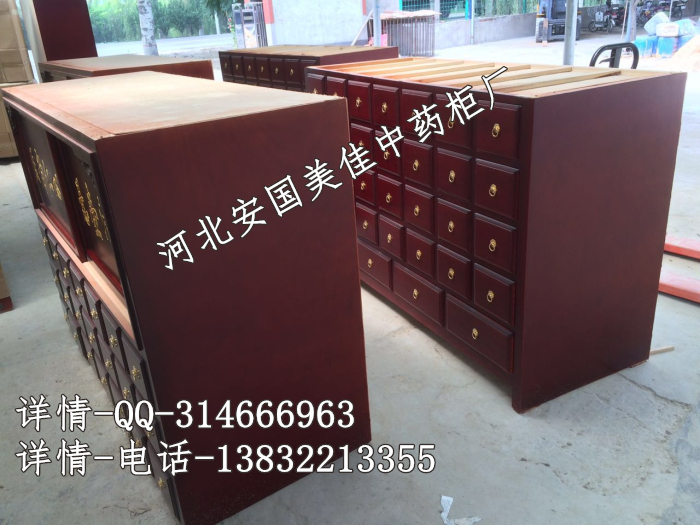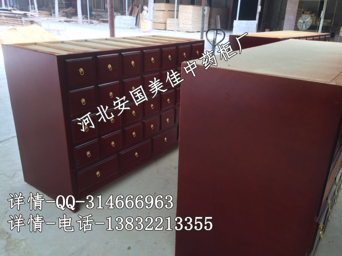 中藥柜款式---橫七豎八款。橫著七個抽屜,豎著八層抽屜,較下面的四個大抽屜,每個抽屜兩味藥,每個中藥柜可以裝155味藥。