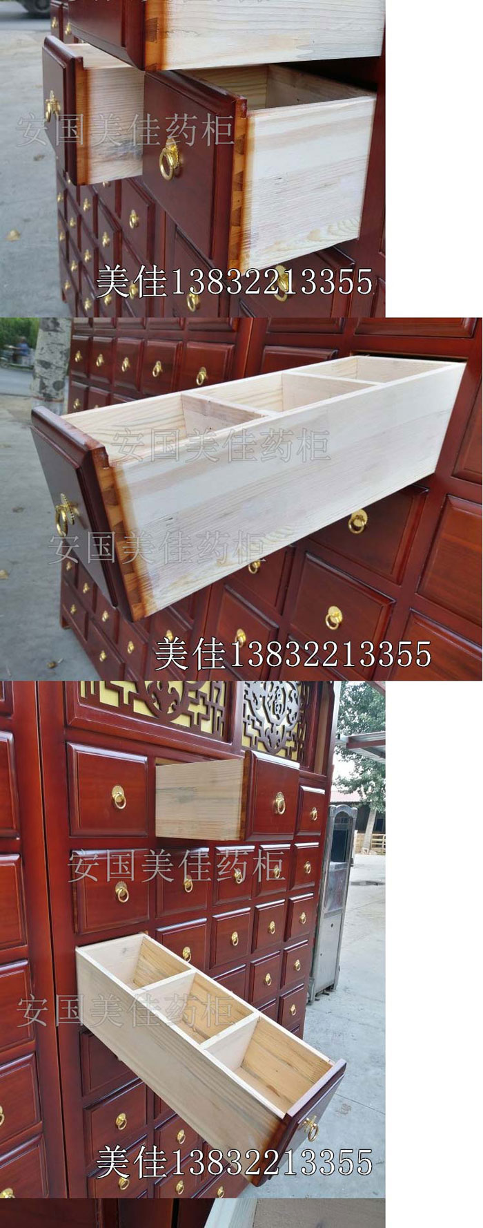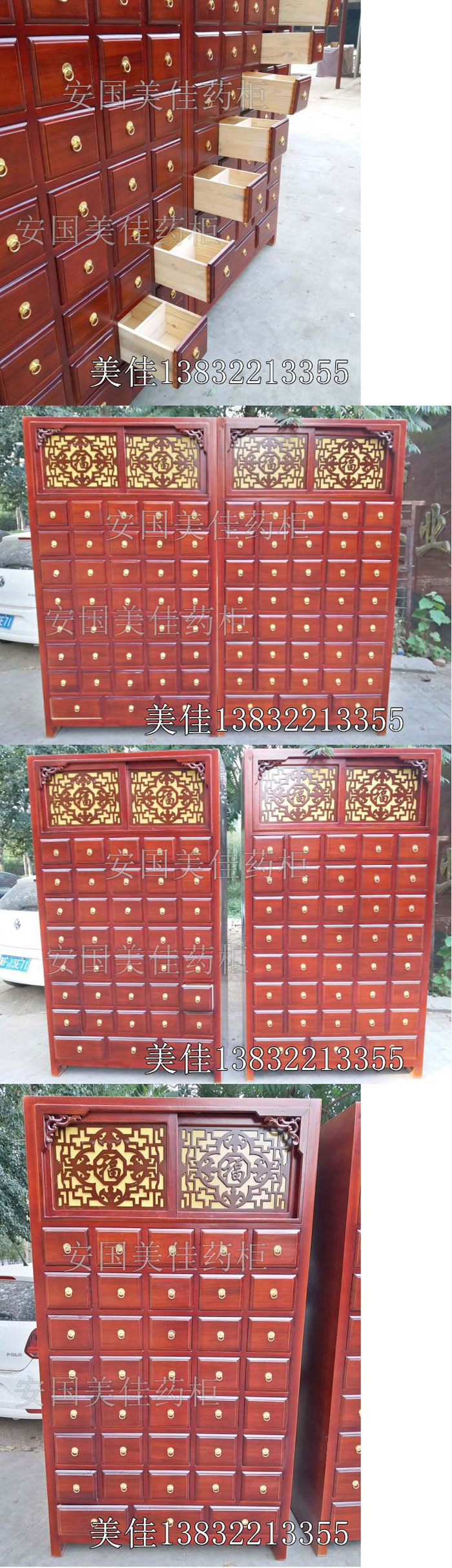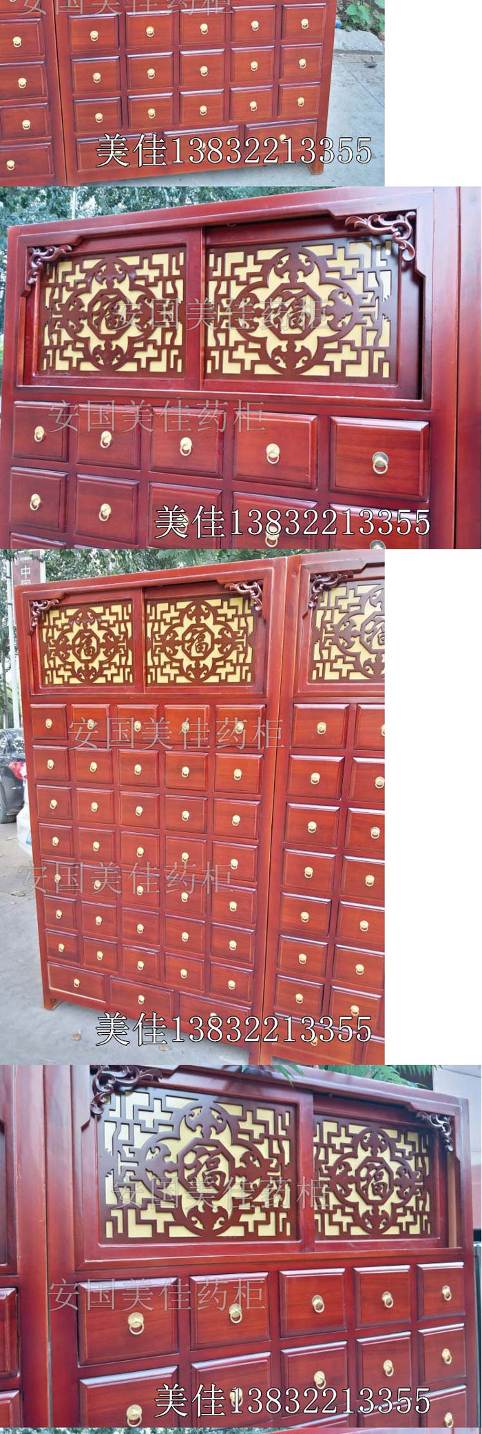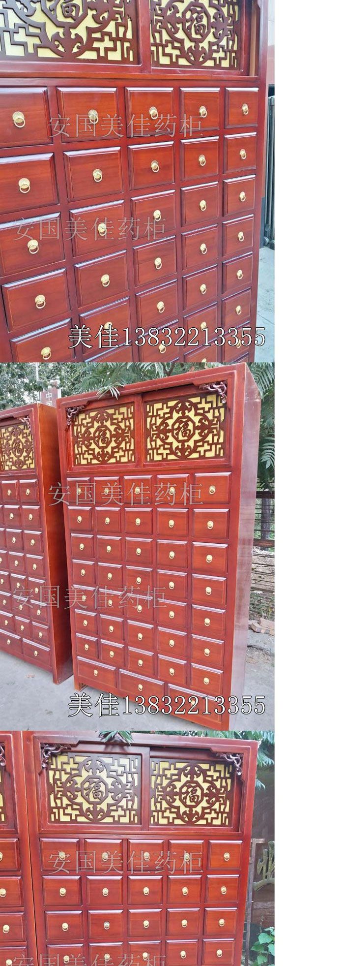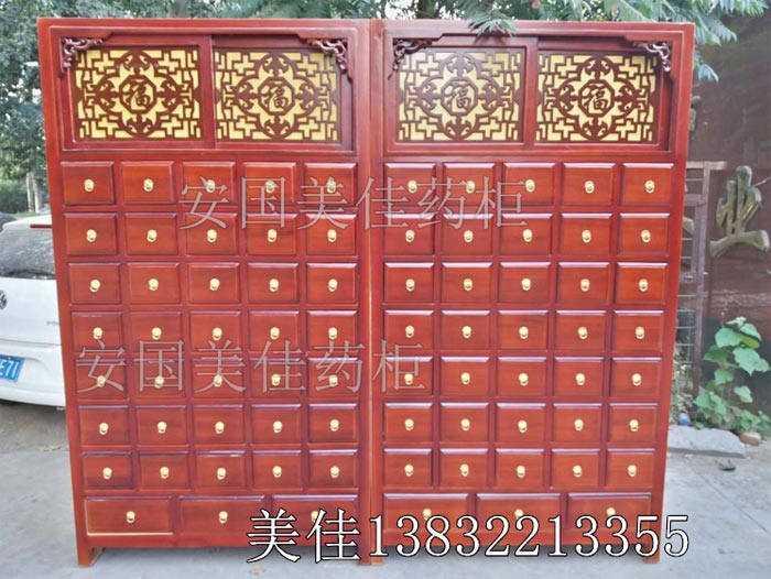 中藥柜款式---橫五豎八。較下邊為3個大抽屜。一個藥柜可以裝111味藥材。